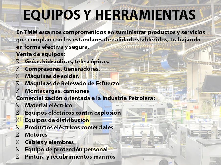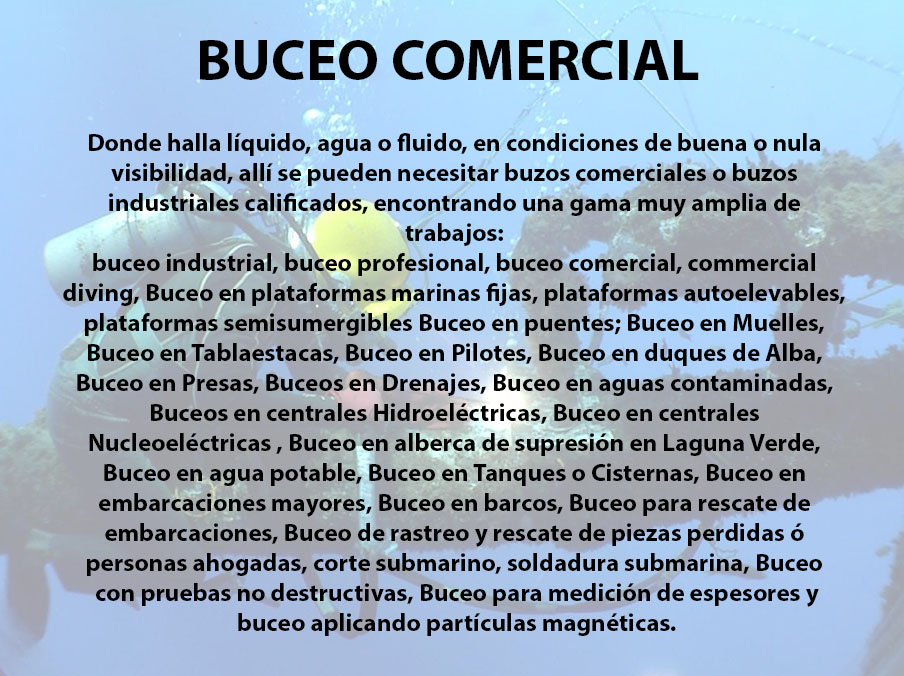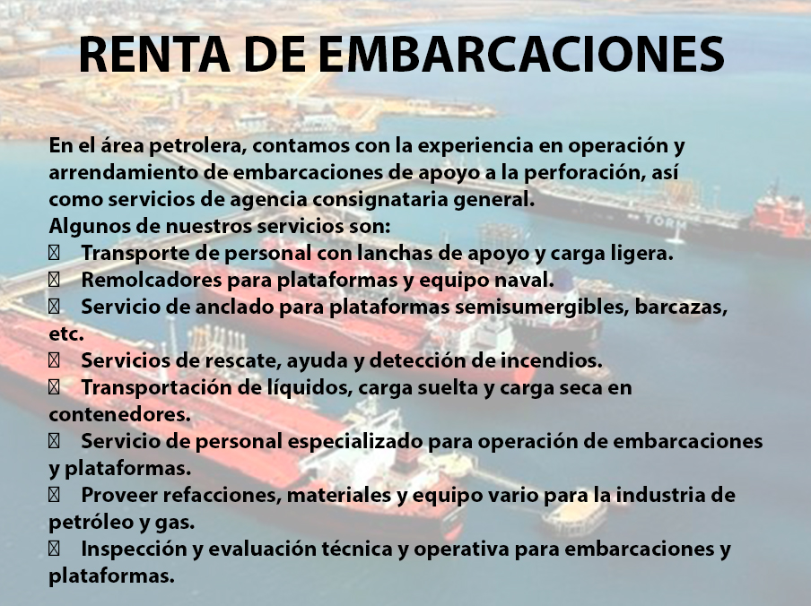 We are a company that focuses on addressing public and private needs with comprehensive services for the energy industry, mainly oil and gas. We have extensive experience in supplies, maintenance and manufacturing. Marine and land electricity, commercial diving, rescue, recovery, as well as sale and rental of equipment and tools.