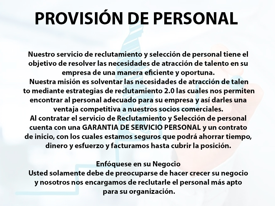 It is very important to offer our services, always seeking the satisfaction of our clients, providing the best service and quality, complying with the current laws of our country in a healthy and respectful work environment, committed to caring for the environment and our society.